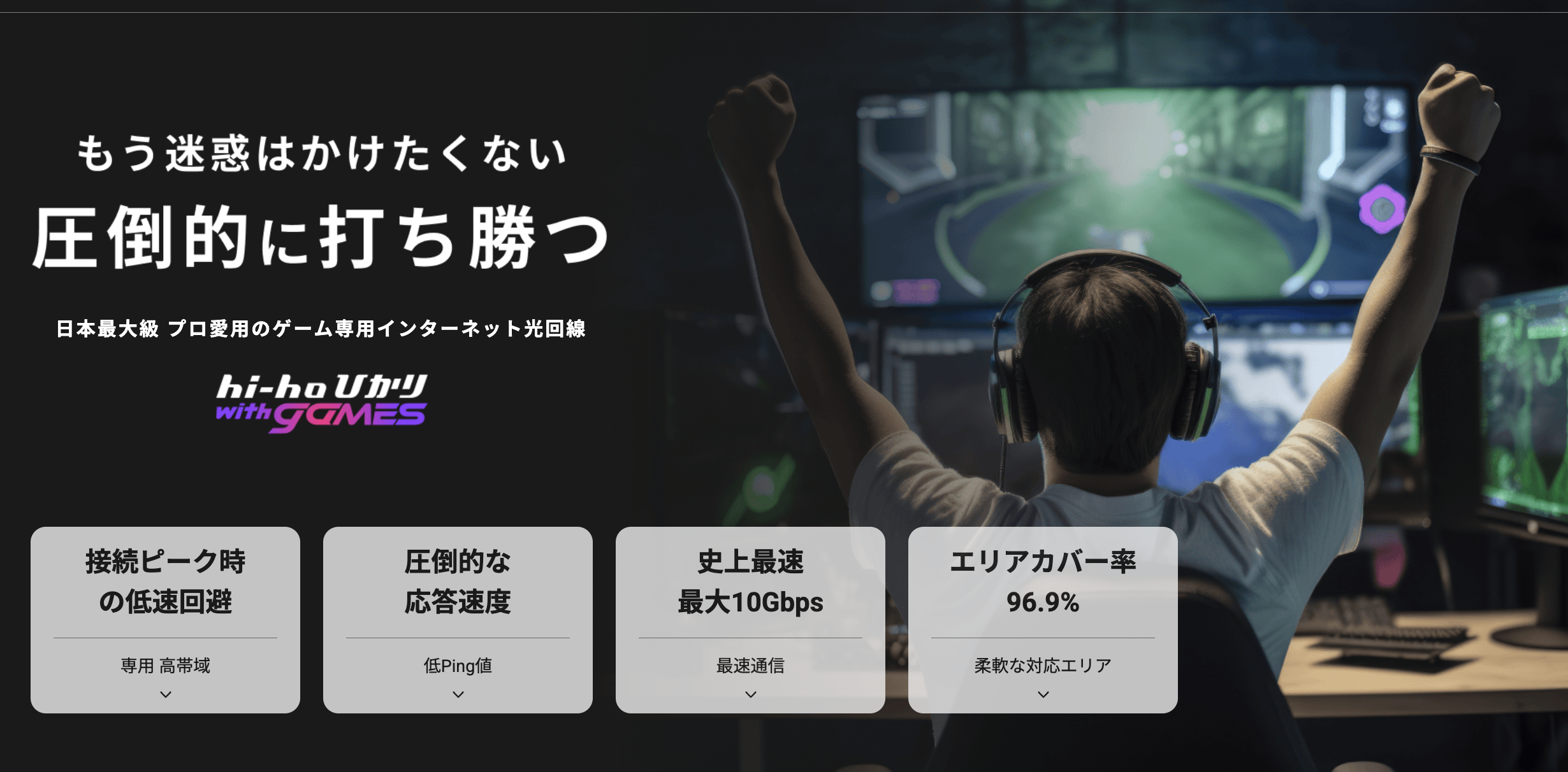 「普通の光回線では夜間の混雑が不安……」というゲーマーのために誕生したのが、hi-ho with gamesです。